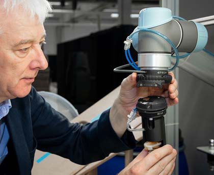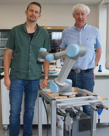 At SDU in Sønderborg Christian Petersson Nielsen is setting up two robots with Kelvin Tool Changers.